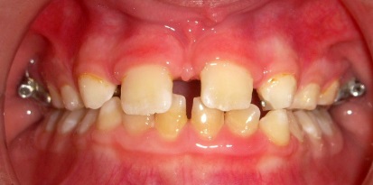 תמונה שיניים לפני יישור לילדיםאחרי גשר לשיניים במרפאת גזית שבמרכז